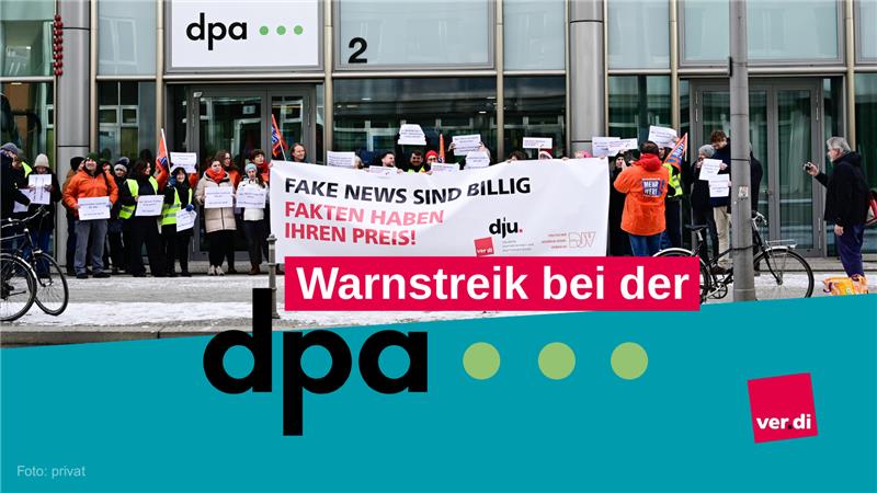 Die Vereinte Dienstleistungsgewerkschaft (ver.di) hat die rund 800 Beschäftigten der Deutsche Presse Agentur (dpa) für heute zum ganztätigen Streik aufgerufen. Der Streik startete um Mitternacht und dauert den ganzen Tag bis 24 Uhr.