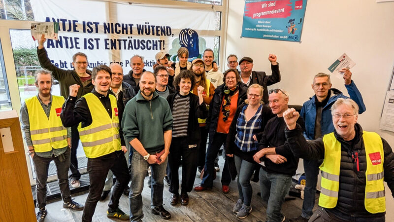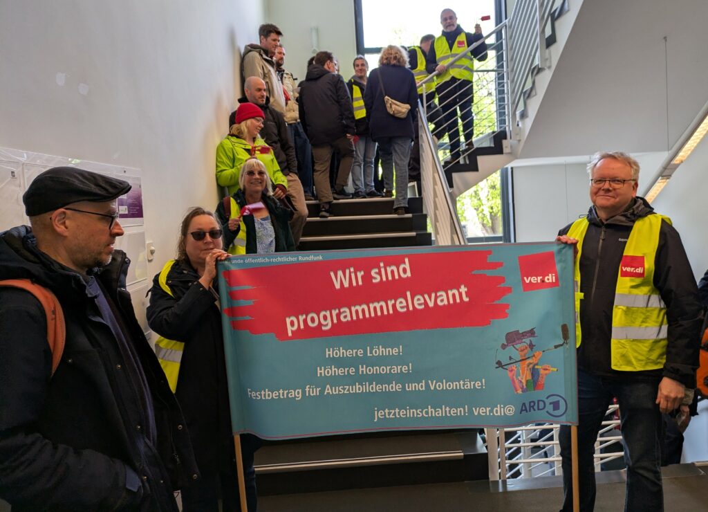 Bereits im Dezember gab ver.di die Forderungen im öffentlichen-rechtlichen Rundfunk (ÖRR) bekannt. Sie betreffen mehr als 40.000 Festangestellte und arbeitnehmerähnliche Freie in ARD, ZDF und Deutschlandradio. Es geht dabei unter anderem um Gehalts- und Honorarsteigerungen von 7 Prozent, mindestens jedoch 300 Euro monatlich. Mit einem bundesweiten Aktionstag Ende Februar forderten die Beschäftigten ihre Arbeitgeber auf, endlich in Verhandlungen über angemessene Gehälter und Honorare sowie über Entlastungstage einzutreten.